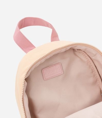 Mochilinha com alças reguláveis, bolsinho frontal com fechamento por zíper e estampa de unicórnio.