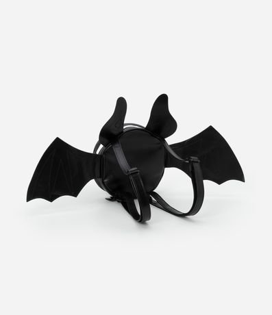 Ref: Mochilinha infantil confeccionada em material sintético, com formato de morcego, com orelhas e asas. Possui bolso com fechamento por zíper e alças reguláveis.