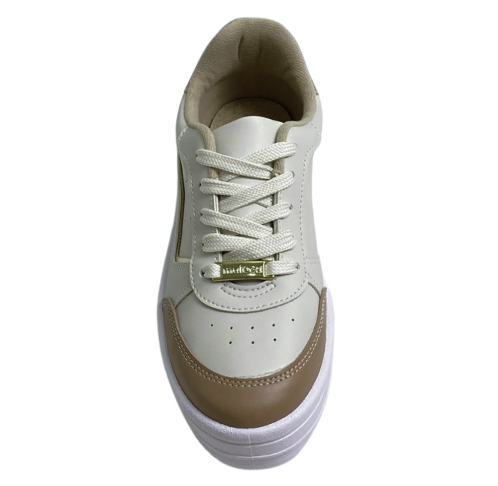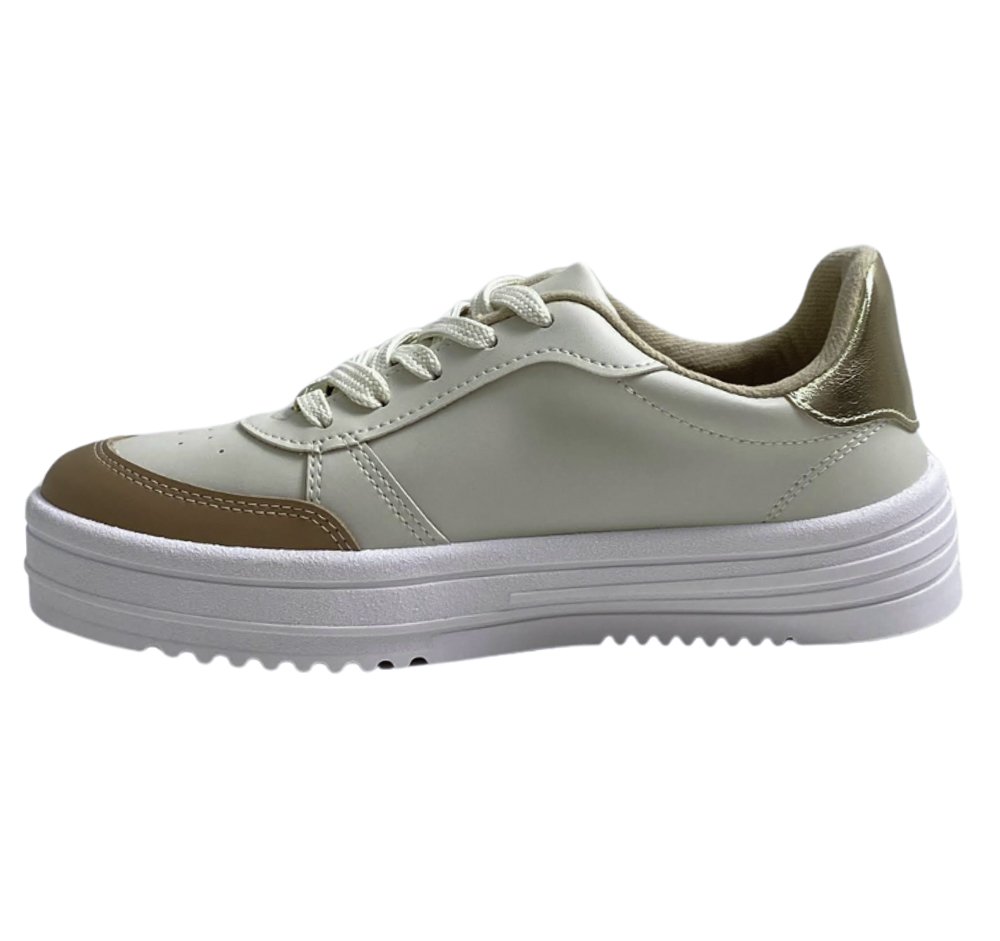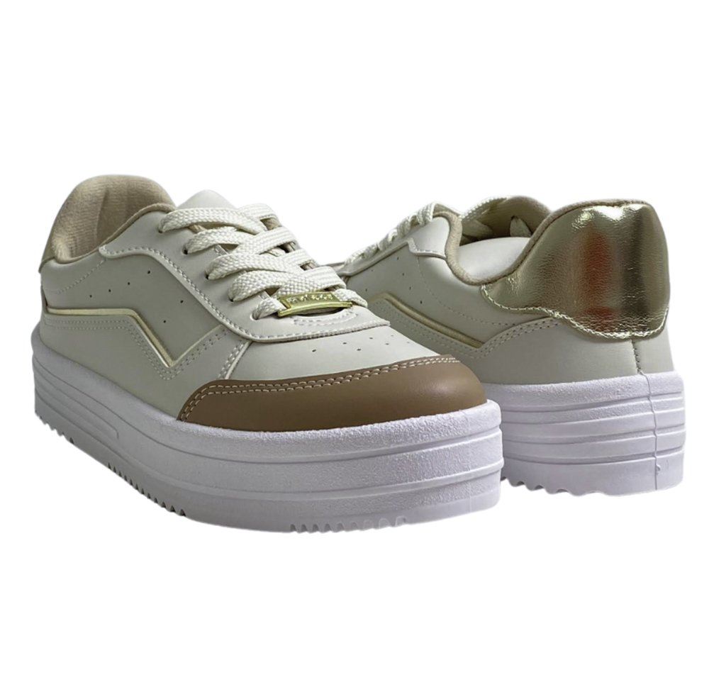 O solado robusto garante estabilidade e segurança, enquanto a palmilha macia proporciona sensação de bem estar o tempo todo. Seu acabamento em tons neutros e detalhes em dourado traz um toque sofisticado que combina com qualquer look.