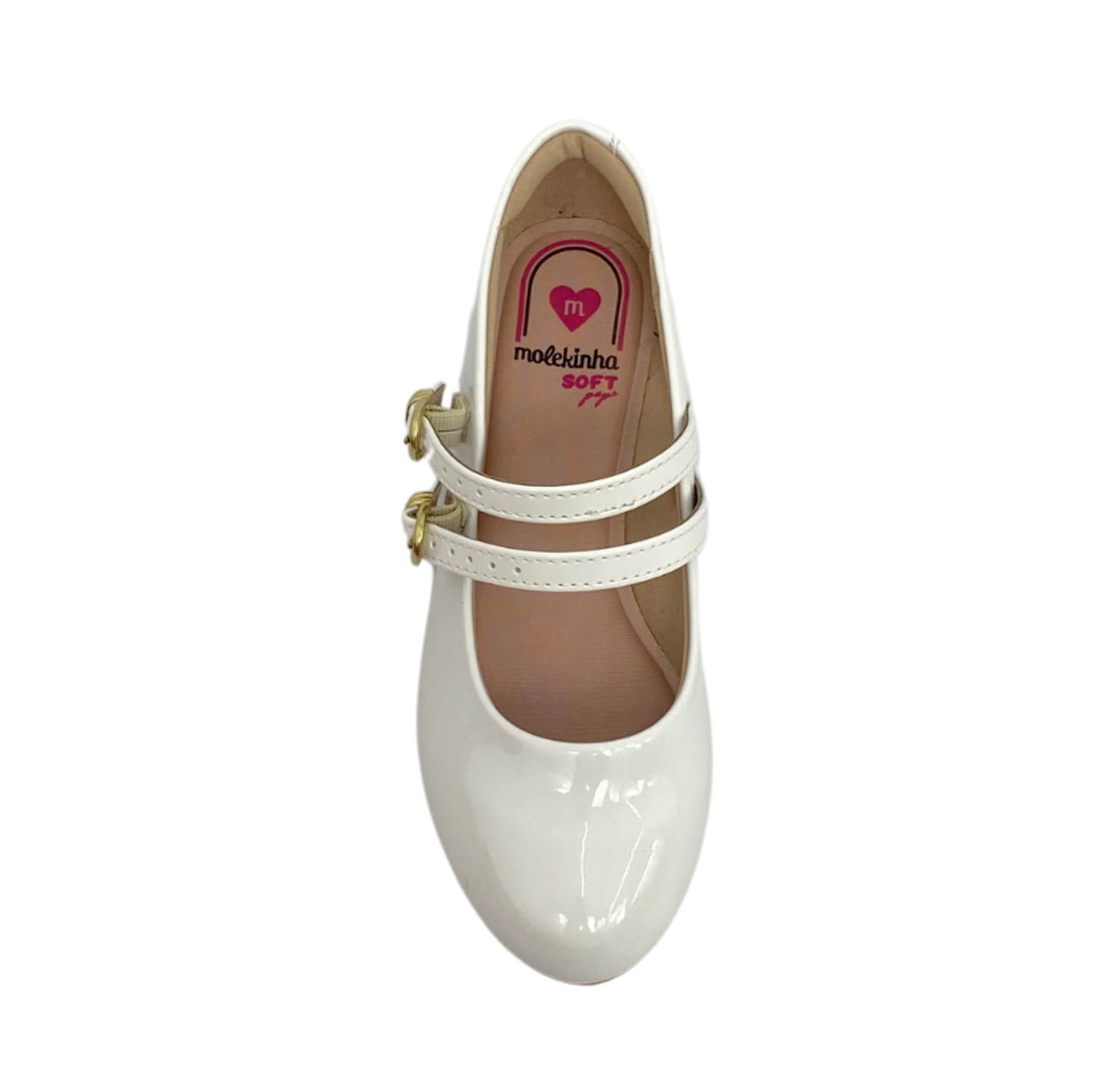 Delicada e confortável, a sapatilha de salto baixo Molekinha é perfeita para as pequenas que amam estilo e praticidade! Confeccionada em verniz e com duas tiras que garantem um ajuste seguro, ela combina charme e conforto para qualquer ocasião.