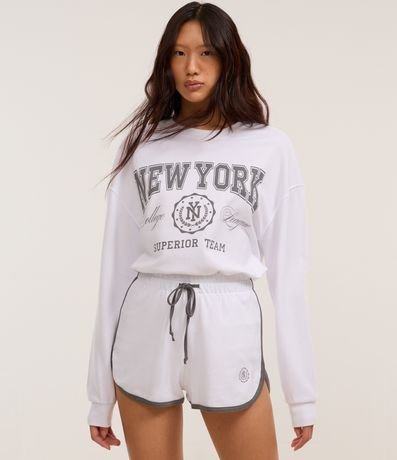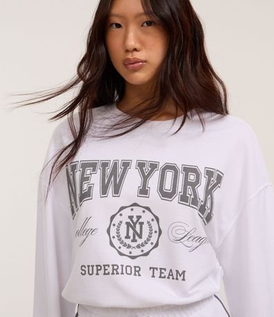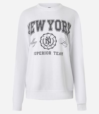 Ref: Moletom de algodão certificado BCI, com gola redonda e mangas longas. Este casaco tem uma pegada bem college com o lettering "New York - Superior Team" estampado no peito. Conta com forro com pelinhos.