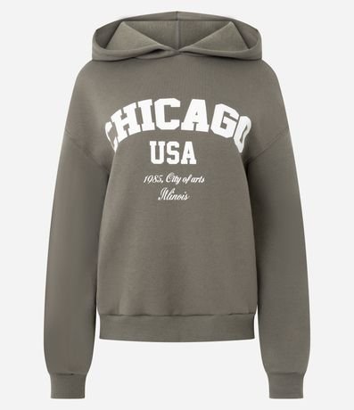 Moletom com Capuz e Lettering Chicago