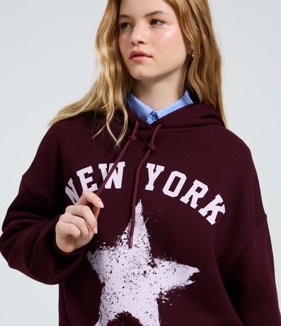 Blusa de Moletom com felpa, capuz ajustável e estampa de estrela com lettering New York. Possui modelagem confortável, mangas longas e acabamento macio para uso diário. Ideal para compor looks casuais com estilo. Peça confeccionado em algodão de certificado BCI.