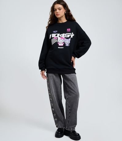 Ref: Moletom feminino com felpa, manga longa e estampa automobilística da personagem Hello Kitty. Possui modelagem confortável e visual moderno para compor looks casuais. Confeccionado em algodão de certificado BCI, garante mais conforto e bem-estar no uso diário.