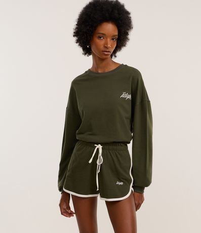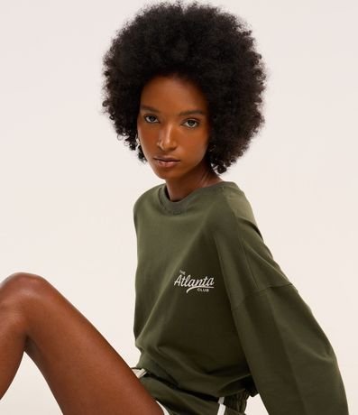 Moletom feminino confeccionado em algodão mais sustentável, gola redonda, manga longa, estampa lettering Atlanta.