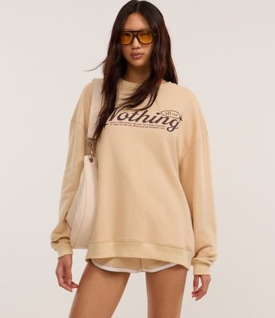 Ref: Moletom fechado feminino, confeccionado em malha de forro fleece quentinho e de modelo regular. Possui gola redonda, punhos e barra canelados e estampa frontal "Nothing".