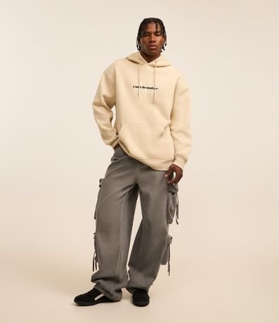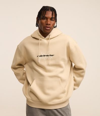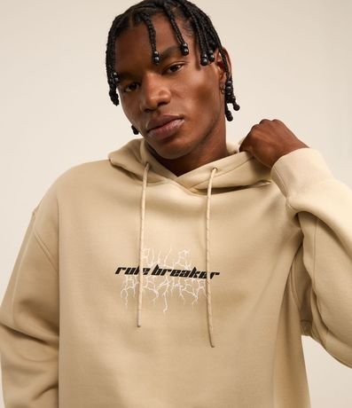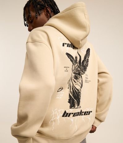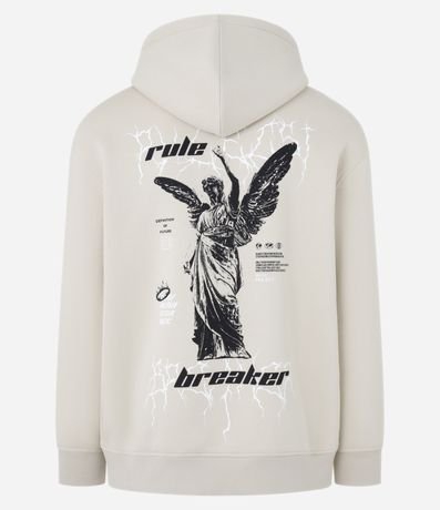 Moletom masculino de modelo relaxed, com capuz e bolso canguru. Possui estampa de estátua nas costas e lettering frontal "rule breaker".