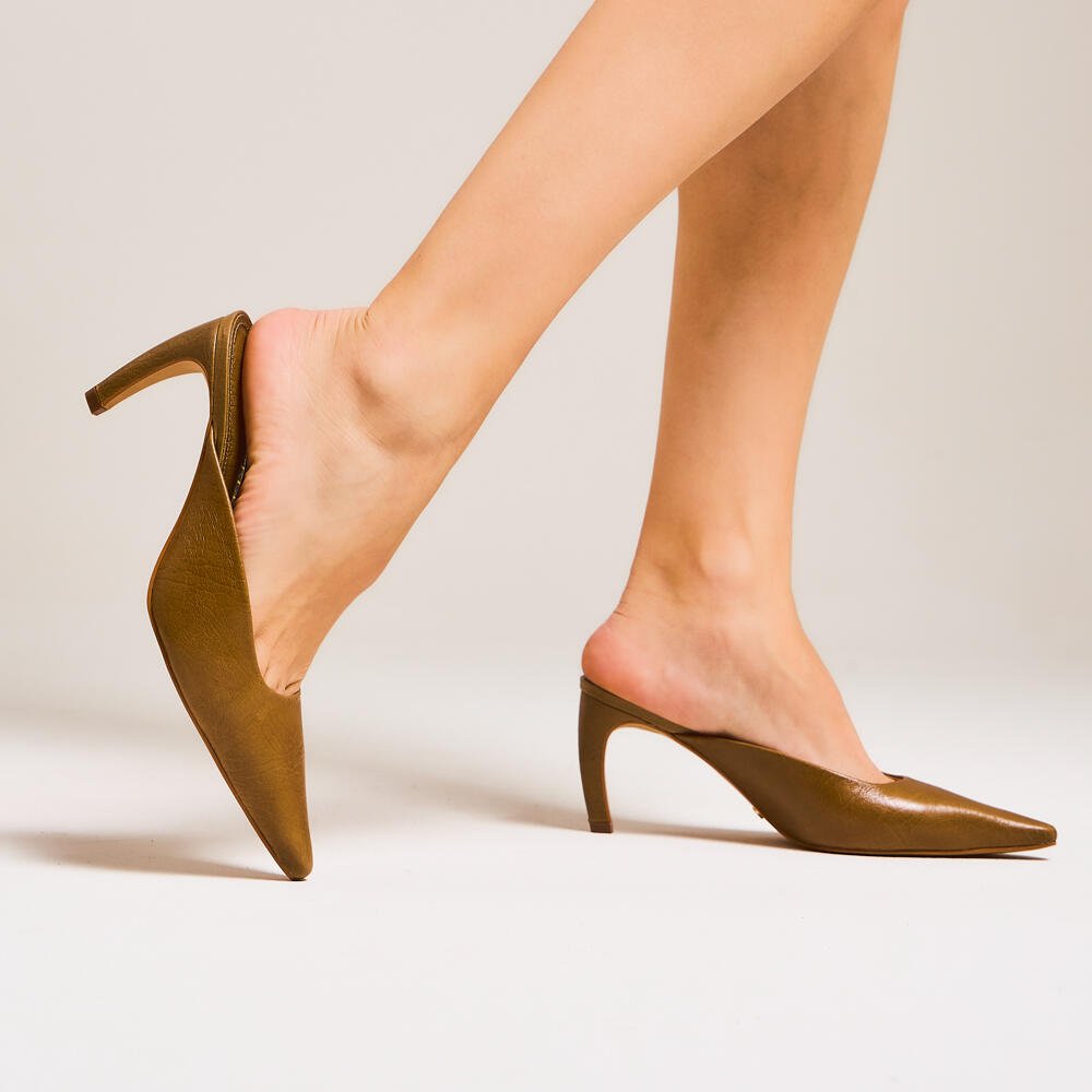 Mule confeccionado em couro legítimo, trazendo um visual sofisticado e atemporal para compor desde produções do dia a dia até looks mais elegantes. O modelo apresenta bico fino alongado, que confere modernidade e alonga a silhueta, além de um recorte lateral suave que valoriza o peito do pé com delicadeza. O salto médio e elegante, levemente curvado, garante estabilidade sem abrir mão da feminilidade. O acabamento em couro com textura natural adiciona personalidade à peça, tornando-a um curinga indispensável no closet.