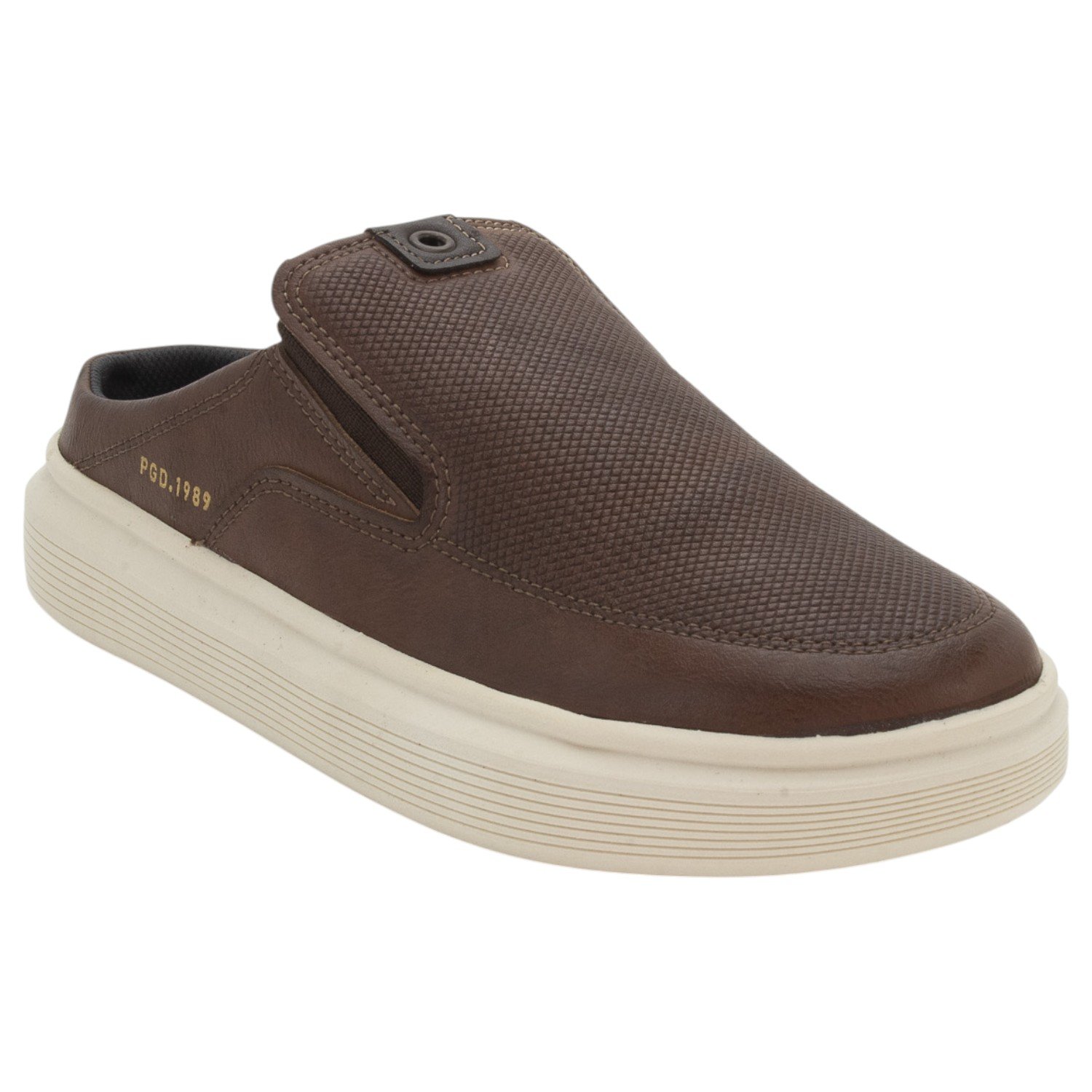 A Mule Masculina Pegada 172107-06 destaca-se pelo design moderno e funcional, sendo confeccionada em microfibra Fibertech na cor marrom, um material tecnológico de alta flexibilidade, leveza e resistência. O modelo apresenta um visual sofisticado que mescla uma textura diferenciada na parte frontal do cabedal com acabamento liso nas laterais, enriquecido pelo detalhe da logo "PGD 1989" estampada em dourado, e conta com palmilha macia e alta capacidade de absorção do suor para conforto prolongado. O conjunto é sustentado por um solado robusto em tom off-white que incorpora as tecnologias Shock Zone para amortecimento de impactos e Extra Grip para maior aderência e segurança. Para completar, o sistema Calce Fácil com elásticos laterais oferece praticidade e agilidade no uso diário.