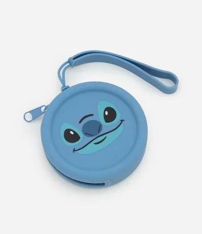 Ref: Porta moedas confeccionado em silicone, de formato redondo, com carinha do Stitch e fechamento por zíper. Possui alça.