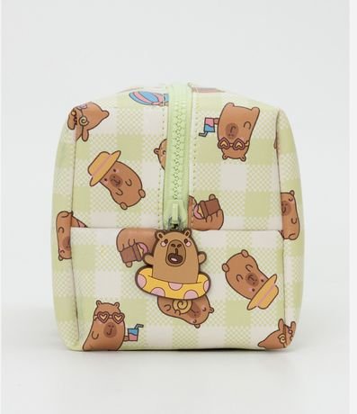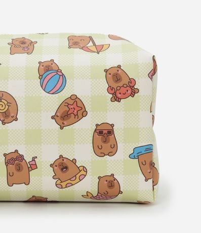 Ref: Nécessaire média com estampa Vichy Capivara Summer, perfeita para quem ama estilo com um toque divertido.