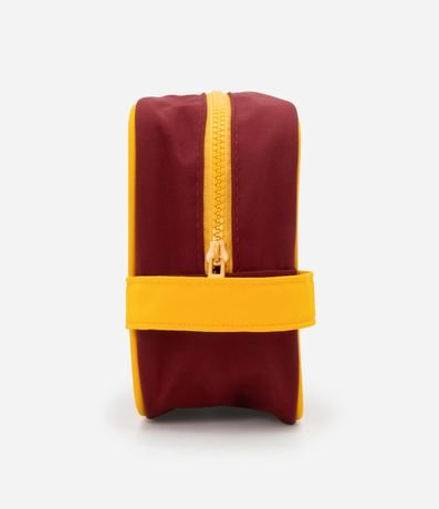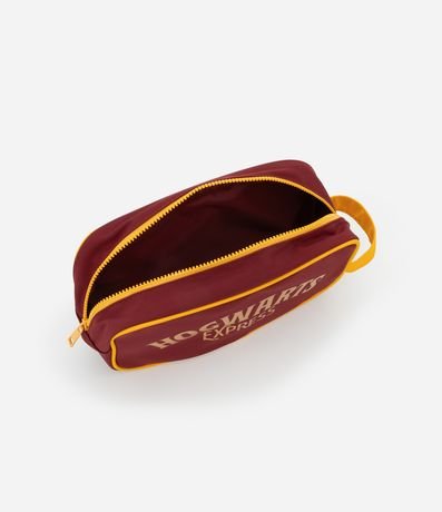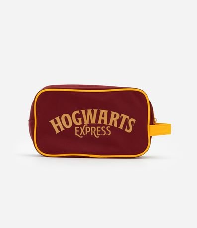 Ref: Nécessaire adulto no modelo retangular grande com alça de mão, viés contrastante, fechamento por zíper e estampa do Hogwarts do filme Harry Potter.