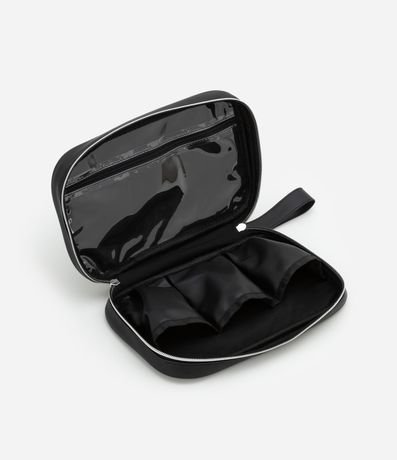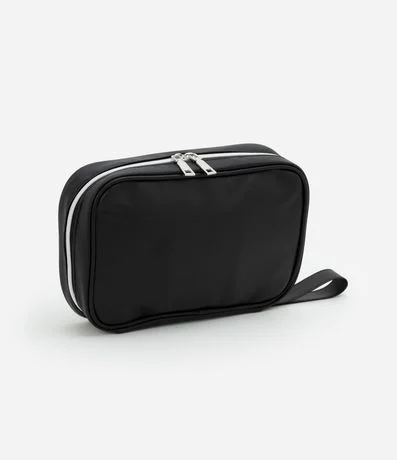Ref: Nécessaire feminina confeccionada em material sintético média no modelo retangular com fechamento duplo por zíper e divisórias internas.