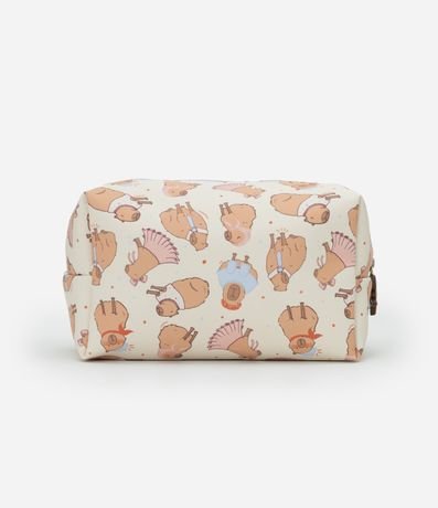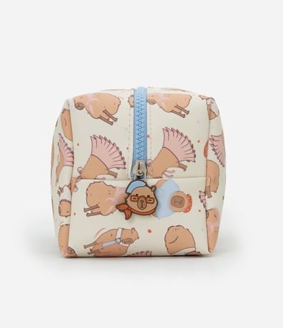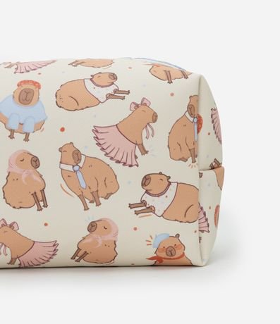 Ref: Nécessaire feminina confeccionada em material sintético, no modelo retangular média, com fechamento de zíper e estampa fofa de capivara.
