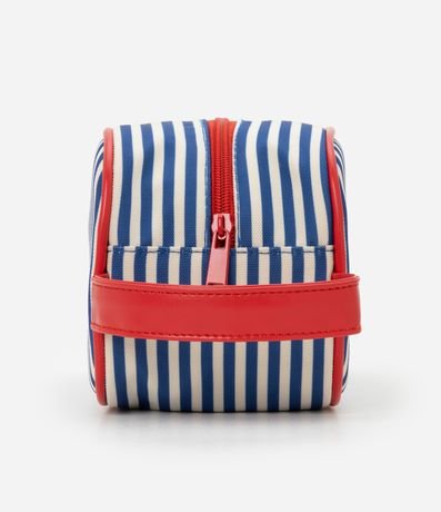 Ref: Necessaire feminina média com listras contrastantes e bordado de lagosta, ideal para o dia a dia.