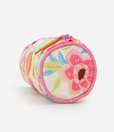 Nécessaire Retangular Pequena em Poliamida com Estampa Floral