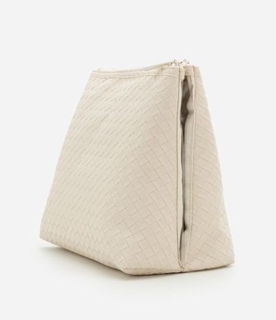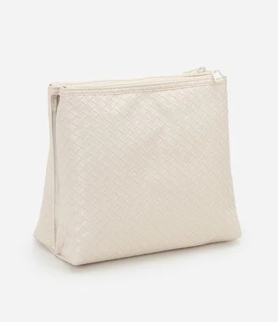 Nécessaire feminina confeccionada em material sintético com fechamento por zíper, divisórias no modelo trapézio.