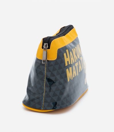 Ref: Nécessaire trapézio média, com fechamento no topo por zíper e estampa do Rei Leão com o escrito Hakuna Matata.