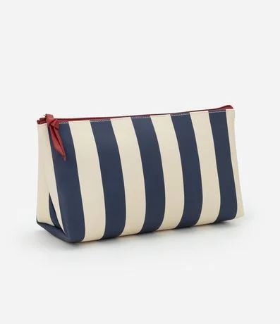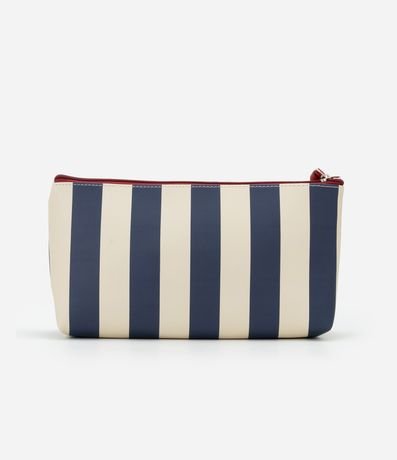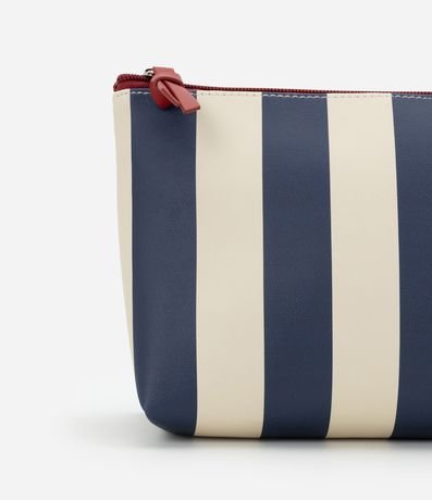 Ref: Nécessaire confeccionada em PU com estampa listrada e puxador contrastante.