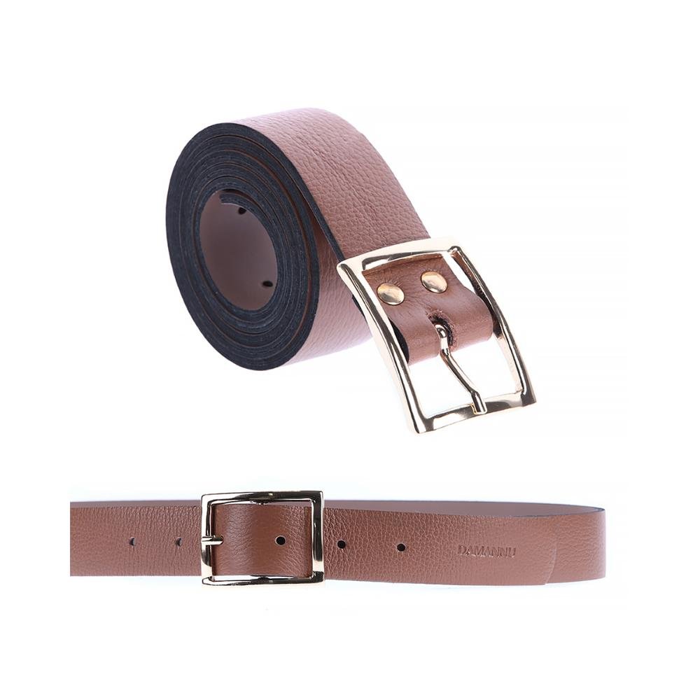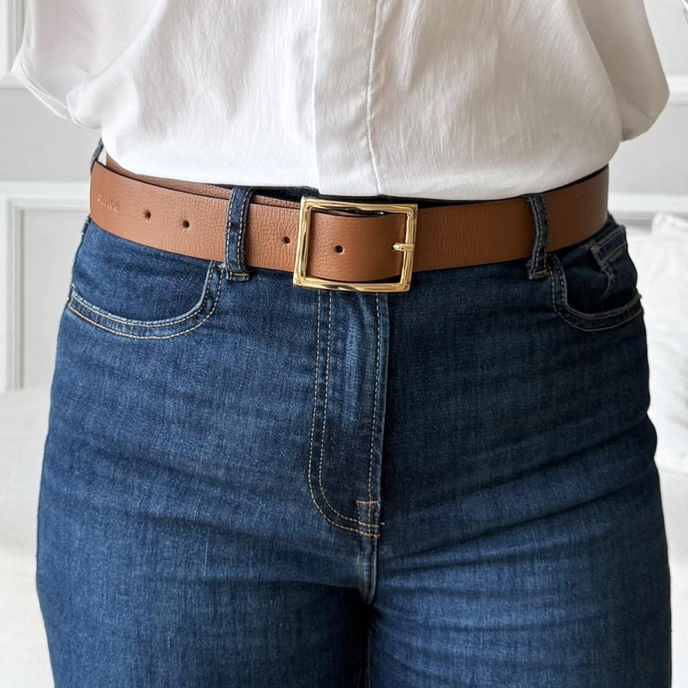 Nelly - Cinto Femino Couro Legítimo Caramelo Fivela Dourada