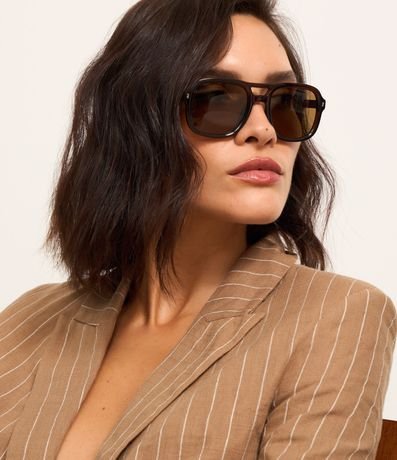 Ref: Óculos aviador feminino, confeccionado em policarbonato, com ponte dupla e hastes médias.