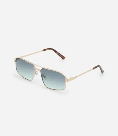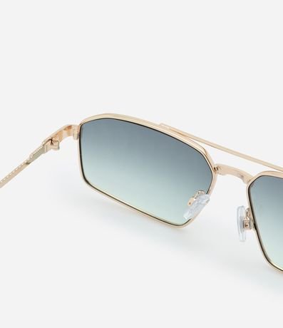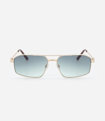 Óculos unissex aviador com ponte dupla, lente verde degradê e detalhes nas hastes.