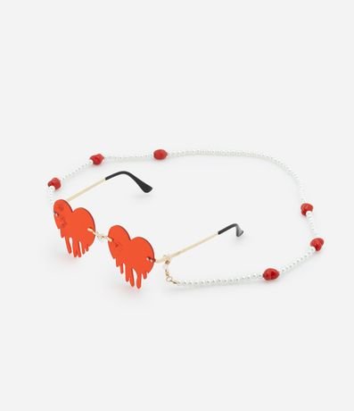 Ref: Óculos de sol unissex com shape pequeno e armação metálica dourada. O modelo redondo com lente em formato de coração traz um toque divertido e estiloso ao visual. As hastes finas garantem leveza no uso, enquanto a cordinha adiciona praticidade e charme.