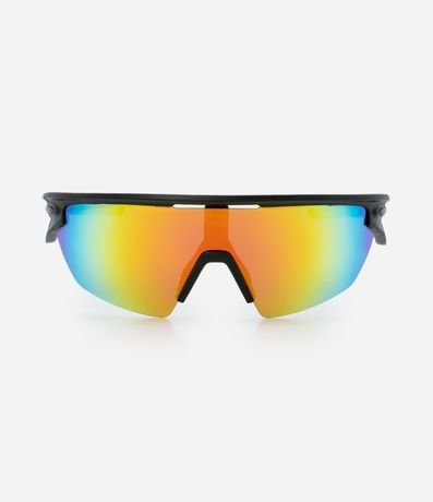 Ref: Óculos de sol esportivo unissex, com armação leve, lente curva com efeito espelhado, apoio nasal integrado e hastes para melhor fixação. Design envolvente que oferece proteção em atividades ao ar livre.