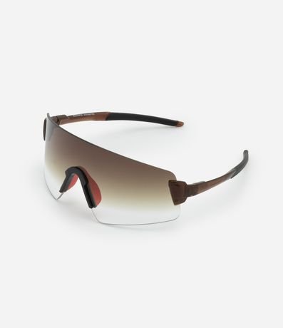 Ref: Óculos de sol esportivo, sem aro, com ponte anatômica e hastes finas. Produto com lente degradê, proteção durante sua rotina, confeccionado com proteção UVA/UVB.