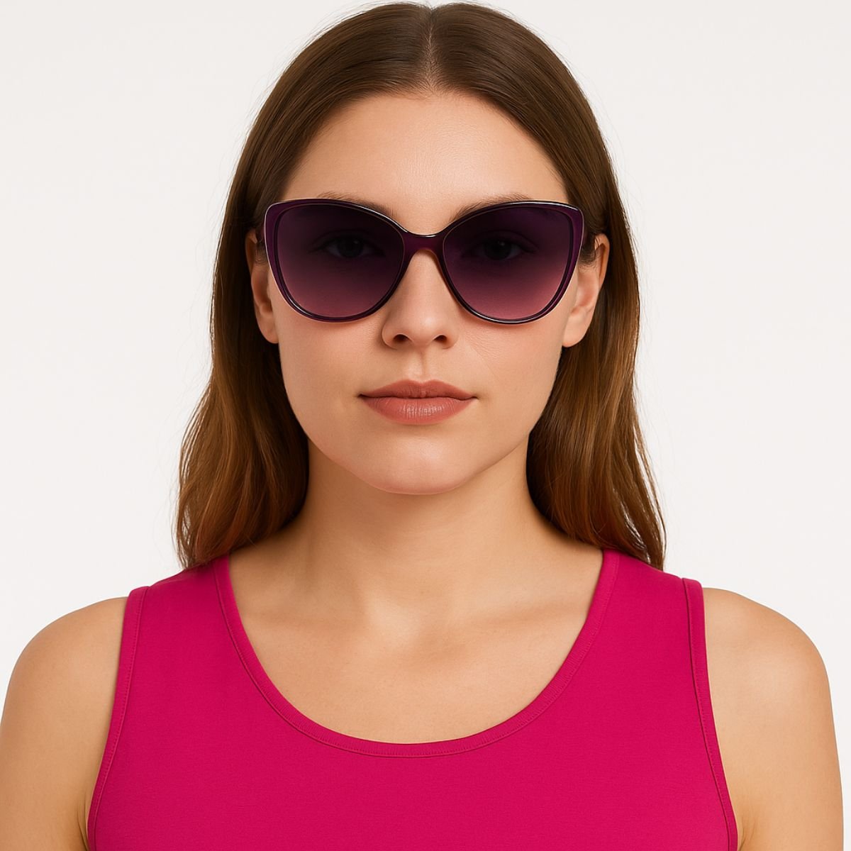 Destaque seu visual com o óculos de sol feminino estilo borboleta. Com armação elegante em tom roxo e lentes degradê, oferece proteção contra raios UV e muito conforto para o dia a dia. Perfeito para compor looks modernos com um toque sofisticado. Ideal para todas as ocasiões, do casual ao elegante.
