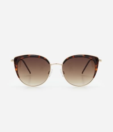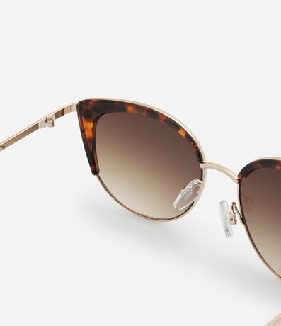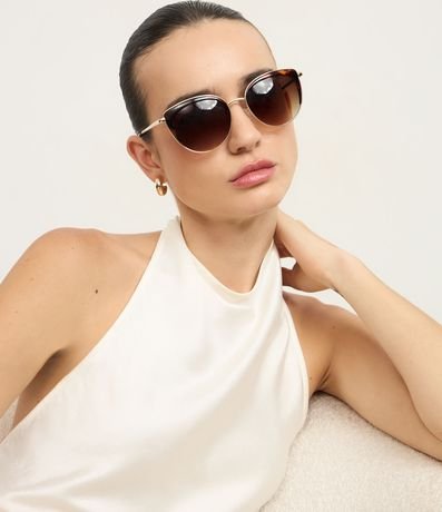 Ref: Óculos de Sol Gateado com Hastes Tartaruga em Metal