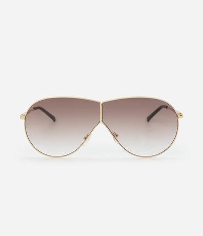 Óculos de sol máscara com lentes marrom degradê e proteção UVA/UVB. Estrutura em metal reciclado com detalhe na ponte e hastes finas. Acompanha embalagem para maior cuidado e praticidade no dia a dia.