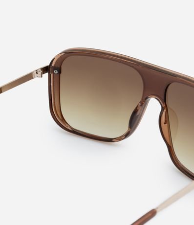 Ref: Óculos de sol máscara feminino traz design moderno com ponte marcante e hastes finas em metal.