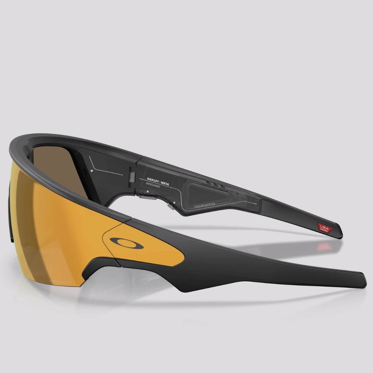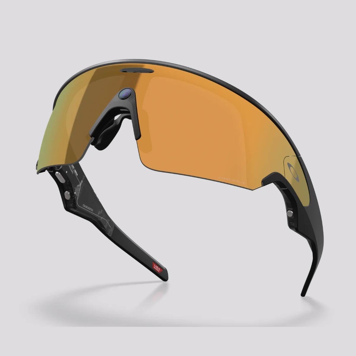 O Oakley Meta possui: câmera, áudio com ouvido aberto (open-ear) e pareamento com o aplicativo complementar para editar e compartilhar conteúdo.
