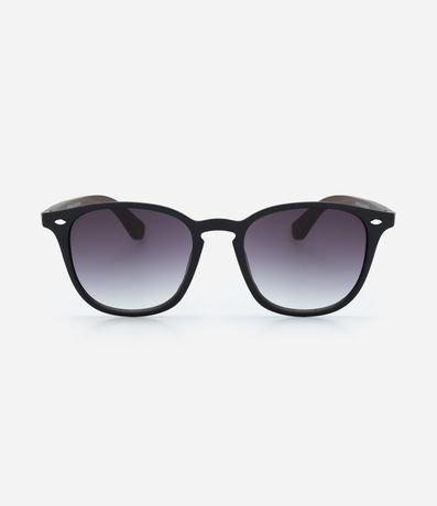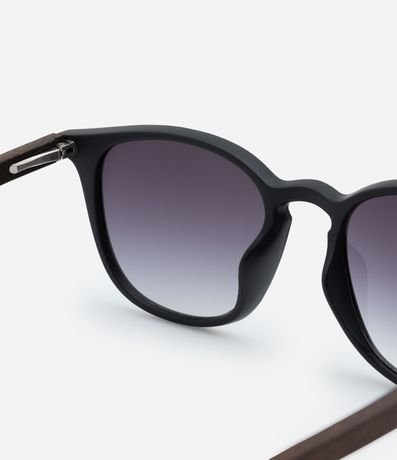Ref: Óculos de sol feminino, modelo quadrado, lente degrade, com com hastes finas em bambu.