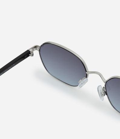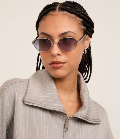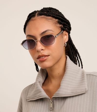 Ref: Óculos de sol confeccionado em metal reciclado levemente hexagonal com haste fina contrastante e lente fume degrade.
