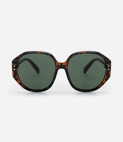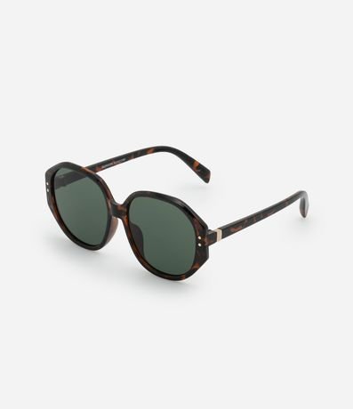 Óculos de Sol Redondo e Hastes com Estampa Tartaruga