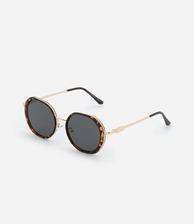 Óculos de Sol Redondo Geométrico com Revestimento Tartaruga