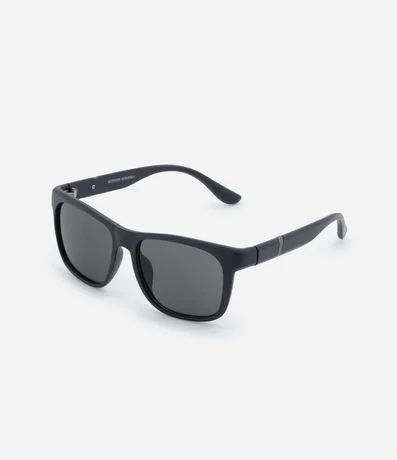 Óculos de sol quadrado, confeccionado em policarbonato e plástico, com lentes fumês degradês.