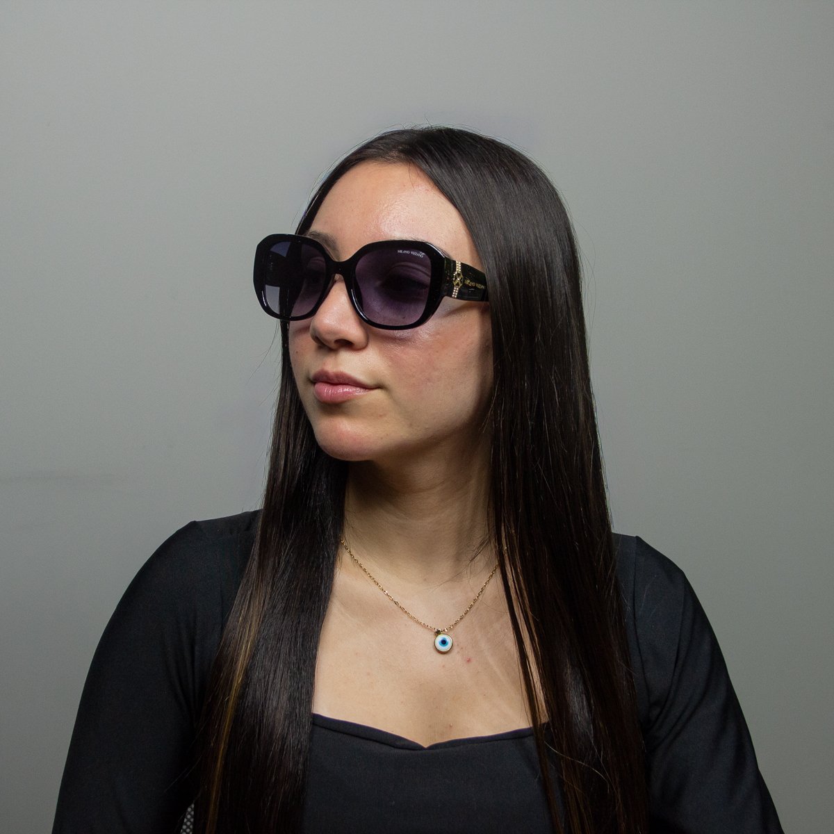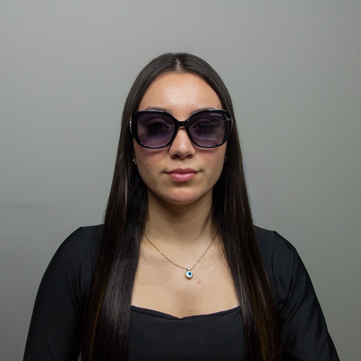 O oculos e fabricado em Poliamida na cor Preto Brilho com hastes na cor Preto conta com lentes em Policarbonato com 100% de protecao UVA e UVB na cor Cinza Degrade.