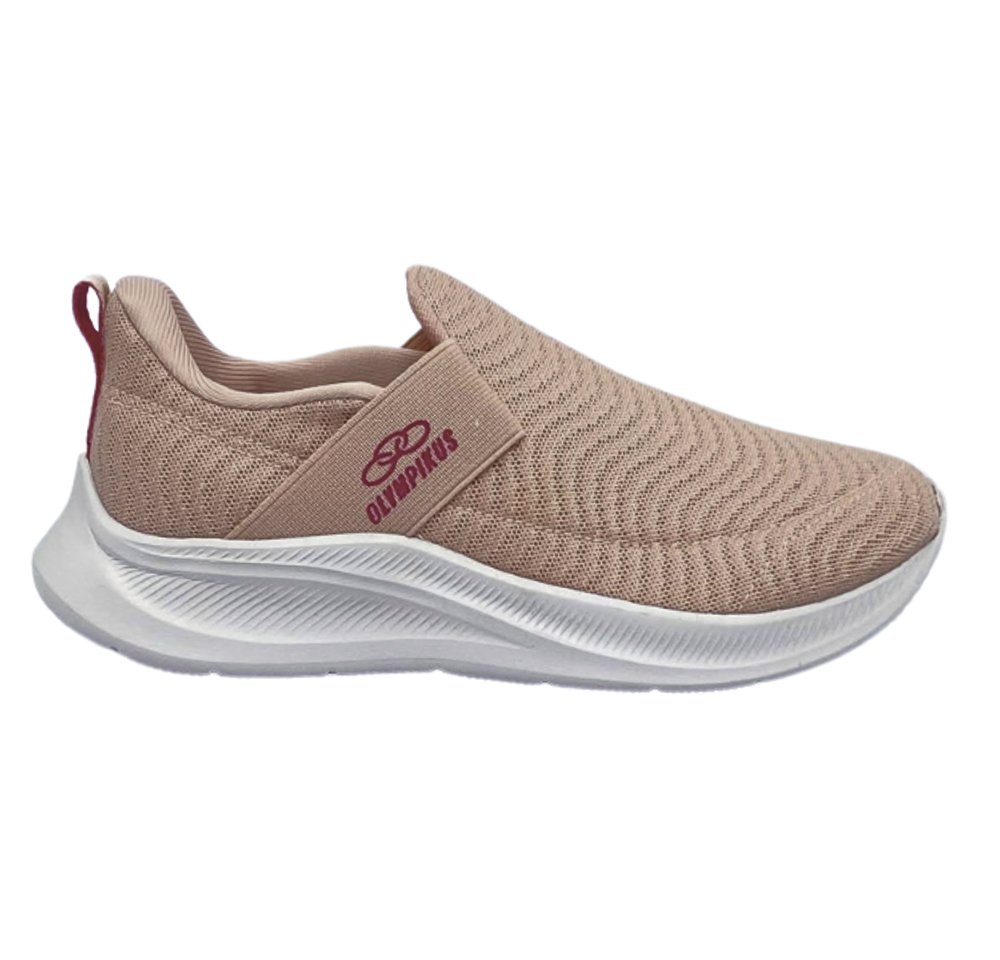 Olympikus Flutua, cabedal tem tecido em dupla frontura e uma gola angulariui com elástico lateral, que dispensa amarração, além do puxador em fita para facilitar. O solado tem a tecnologia Evasense que proporciona leveza.
