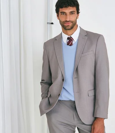 Ref: Paletó slim confeccionado em poliéster estruturado com textura espinha de peixe, oferecendo caimento alinhado e toque sofisticado. Possui gola lapela clássica, mangas longas, bolsos frontais com aba e fechamento por dois botões. Ideal para compor produções formais e modernas com acabamento de alfaiataria.