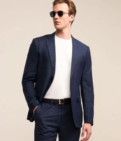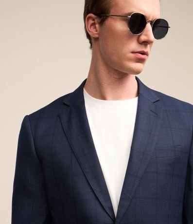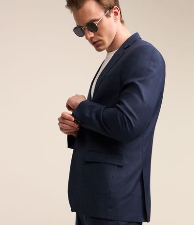 Ref: Paletó slim, confeccionado em viscose, xadrez e com lapela na gola e bolsos.