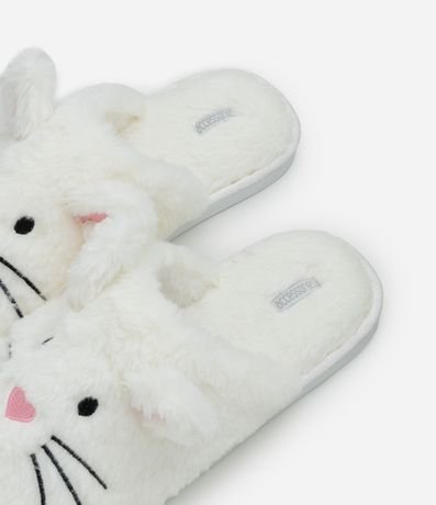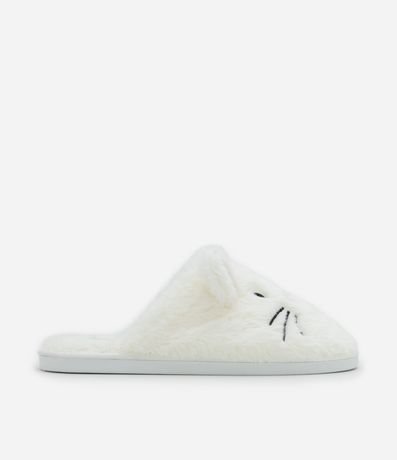 Ref: Pantufa chinelo, peludinha com bico redondo, orelhinhas e bordado de coelhinho.
