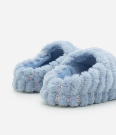 Ref: Pantufa infantil modelo chinelo, quentinha e apeluciada, possui bordado de paetês.