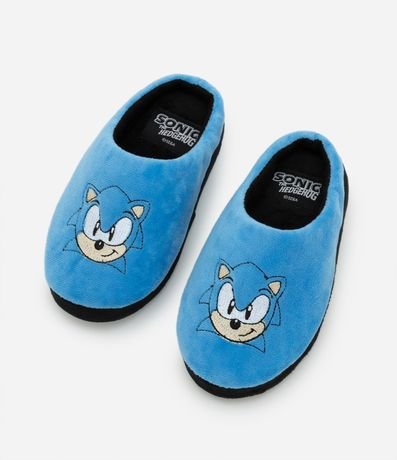Ref: Pantufa infantil modelo chinelo confeccionada em fleece com bordado do Sonic.