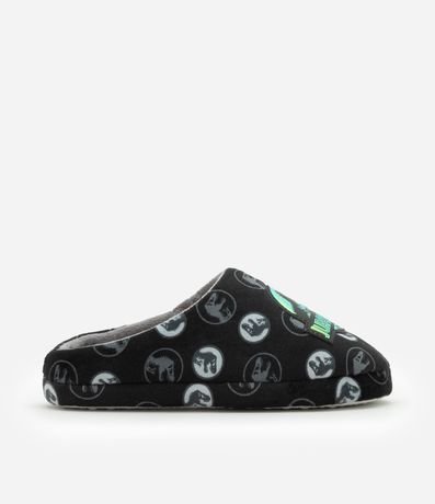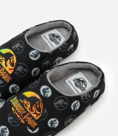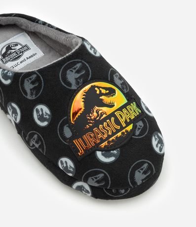 Ref: Pantufa infantil modelo chinelo confeccionada em fleece com bordado Jurassic World.