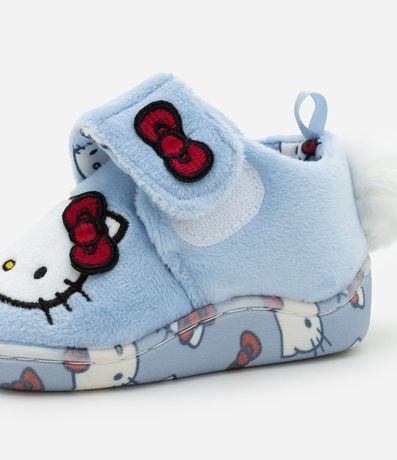 Ref: Pantufa infantil modelo fechada com bordado da Hello Kitty, pompom no calcanhar e fechamento por velcro.