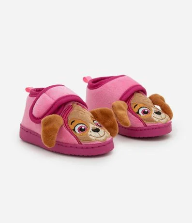 Ref: Pantufa infantil confeccionada em fleece felpado, com estrutura fechada e sola injetada antiderrapante. Possui aplicação frontal da personagem Skye, da animação Patrulha Canina, com orelhinhas em relevo, além de fechamento lateral por velcro e forro interno macio.