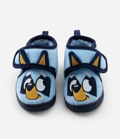 Ref: Pantufa infantil modelo fechada confeccionada em fleece macio. Possui interior felpado, fechamento frontal ajustável, sola injetada antiderrapante e estampa localizada da Bluey, personagem da animação que representa brincadeiras, criatividade e momentos em família, garantindo conforto para uso em casa.